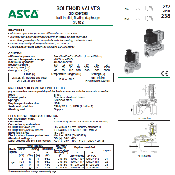 產品名稱:美國ASCO電磁閥-SCE238D004 銅 水閥DN20