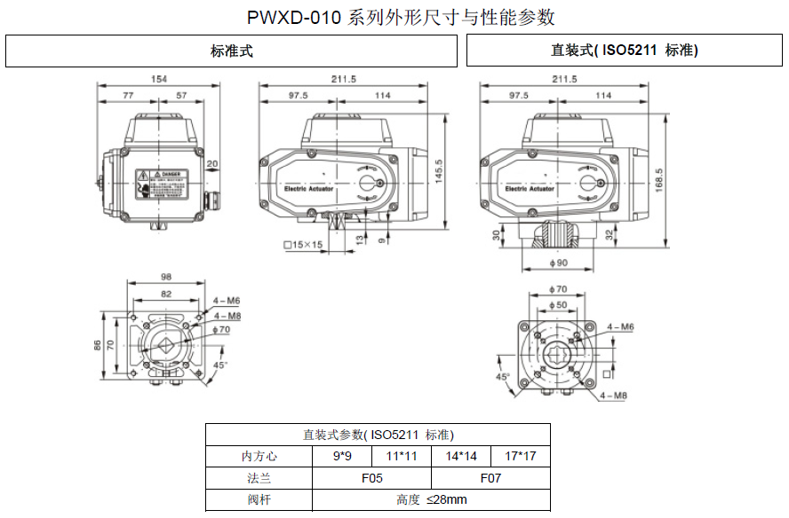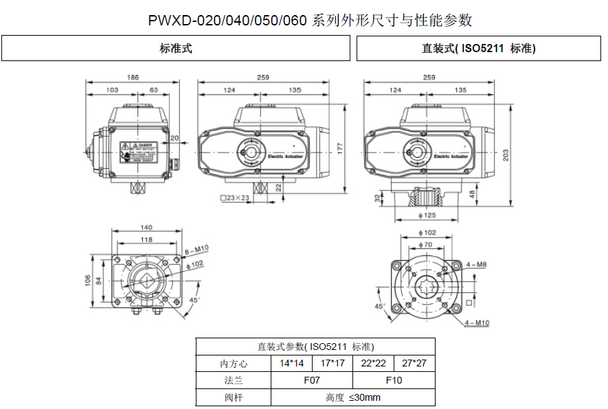 底部安裝尺寸符合ISO5211/ DIN3337國際標準,孔成雙四方形便于帶方桿的閥線性或45°轉角安裝,適應性強。可以垂直安裝,也可以水平安裝。